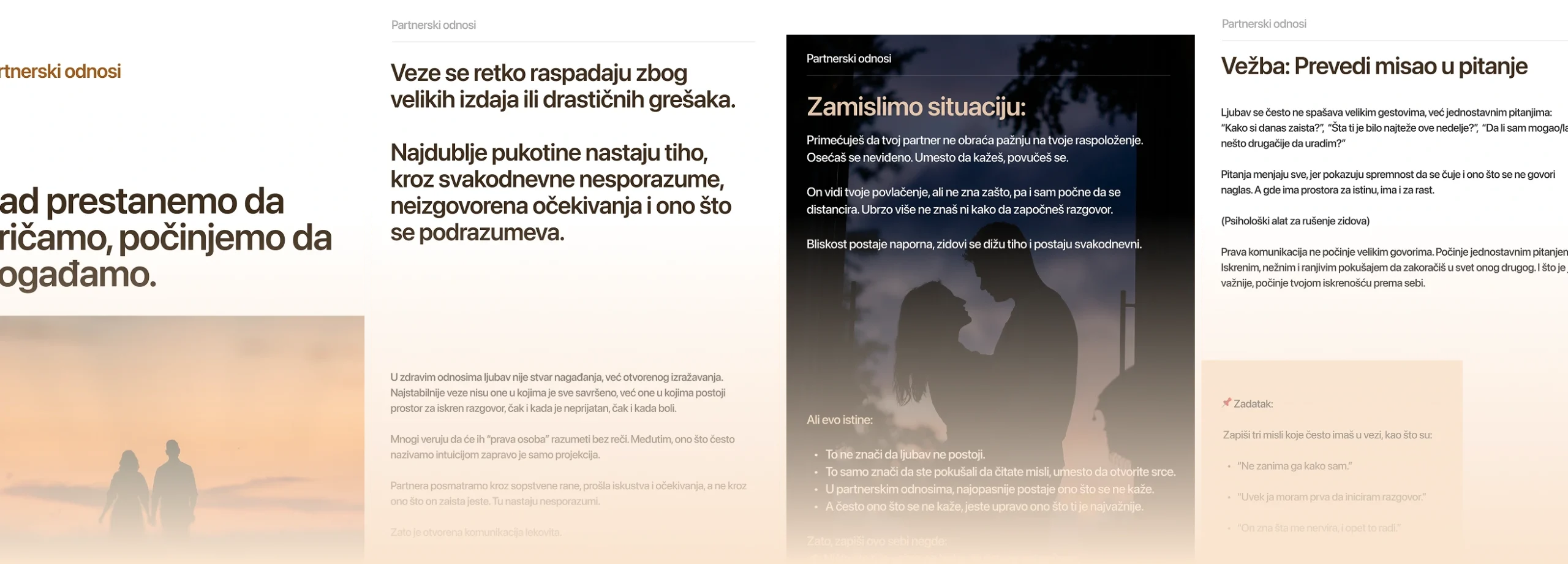 Veze se najčešće ne raspadaju zbog velikih izdaja ili katastrofalnih grešaka. Najveće pukotine nastaju tiho, u svakodnevnim nesporazumima, u neizgovorenim očekivanjima, u onome